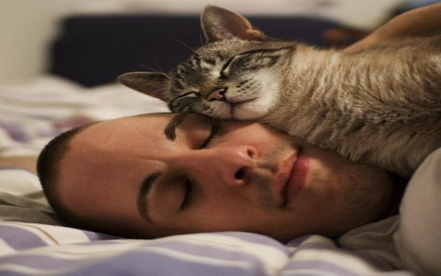 В случае, если пушистый питомец спит рядом со своим хозяином, у человека отмечается присутствие ни с чем несравнимого успокоения. Сон рядом с человеком свидетельствует о том, что пушистик вам полностью доверяет. Во-вторых, когда человек отдыхает совместно со своим домашним питомцем каждый из них обладает способностью к достижению максимального расслабления и удовлетворения. Коты и кошки радуются хозяйскому возвращению. А люди же рады от того, что питомец обладает очень сильной привязанностью к ним и даже находиться во сне предпочитает возле хозяина.