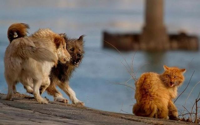 Особо страшными кошкам могут показаться собаки, которым свойственно осуществление погони за ними. Даже, если та самая погоня является собачьим развлечением, и не предпринимается с целью покусать пушистика.
