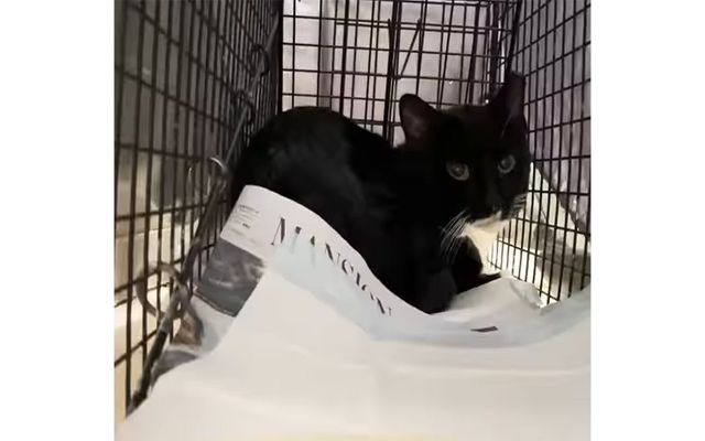 Проверка реакции на угощение послужила в качестве следующего этапа. Как правило одичавшим кошкам свойственно отказываться от приёма пищи при человеческом присутствии. В случае с Хантом, пусть и не сразу, но этим котом лакомство через клетчатые прутья всё же было принято.