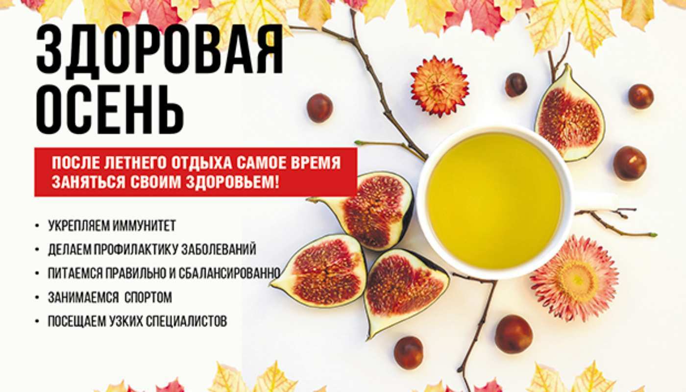 Лето, богатое солнечными лучами, теплом и витаминами, традиционно сменила осень. Период обострения старых хронических заболеваний и появления новых, вступил в свою власть. А значит, самое время задуматься о здоровье! Пройти комплексное обследование, скорректировать режим дня и рацион питания – словом, заняться собой, сменить ленивые привычки на активный образ жизни.