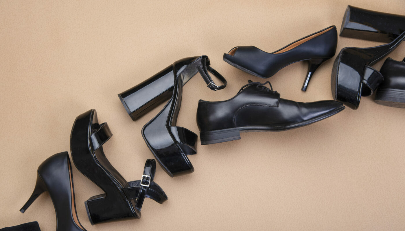 Мода на 90-е годы актуальна в этом сезоне. Речь идёт о ботильонах с тупым мысом, туфлях в стиле Мэри Джейн, лоферах на крепком каблуке. В идеале подбирать такую обувь в чёрном цвете, что смотрится весьма лаконично.