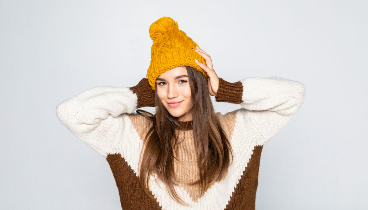 На пике моды остаются вязаные шапки-бини, которые плотно облегают голову и защищают от колючих морозов. Одним из важных преимуществ такой модели является их совместимость с практически любой верхней одеждой. Например, с пальто, теплыми дутыми куртками и жилетами.