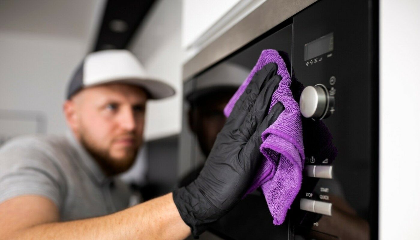 Как только емкость, заполненная водой и корками, поставлена в печку, включите ее на 5 минут на максимальную мощность. Выждите еще минут 10, не открывая дверцу. И затем останется только протереть стенки влажной губкой — вся грязь должна легко сойти. Кроме того, внутри печки будет приятно пахнуть.
