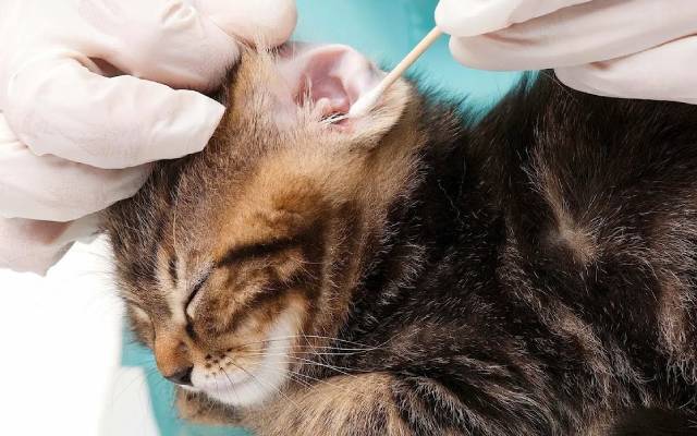 В начале проведения процедуры по чистке кошачьих ушей ушко животного должно быть отогнуто и протёрто сухим ватным диском. Вслед за этим процедуру протирания уха проводят с использованием ватного диска, смоченного в дезинфицирующем растворе. Выполнение движений в рамках проведения процедуры осуществляется изнутри наружу. Накопившаяся грязь не должна вталкиваться вовнутрь, а должна быть вытащена наружу. Вслед за этим посредством использования ватных палочек аккуратно осуществляется удаление загрязнений, скопившихся в ушных складочках. Ватная палочка не должна погружаться глубоко в ушко животного, в связи с тем, что это чревато травматизмом для него.