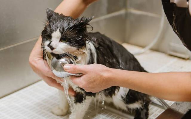 Вслед за этим шерсть кота рекомендуется тщательно прополоскать. Смывание пены следует осуществлять сверху вниз с максимальной осторожностью. Шампунь с тела питомца удобно смывать посредством использования ручного душа. Во избежание возникновения кожного раздражения моющее средство должно целиком смываться с тела животного.