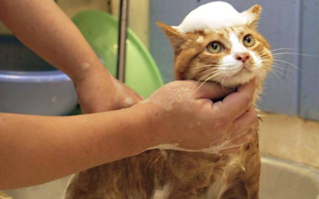 - Специально подобранный кошачий шампунь. Ph кожи у котов и людей значительно отличается, в связи с этим моющими средствами для людей или хозяйственным мылом кошку мыть не рекомендуется;