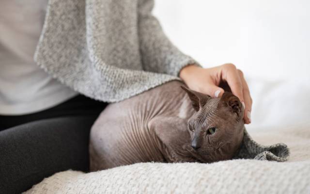 - Сесть на полу с кошкой. Животное должно быть расположено мордой от хозяина.