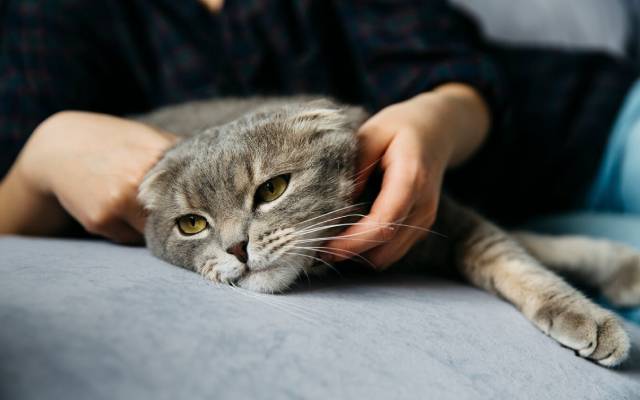 - С животным можно попробовать ласково поговорить, погладить пушистика, после чего почесать его подбородок.