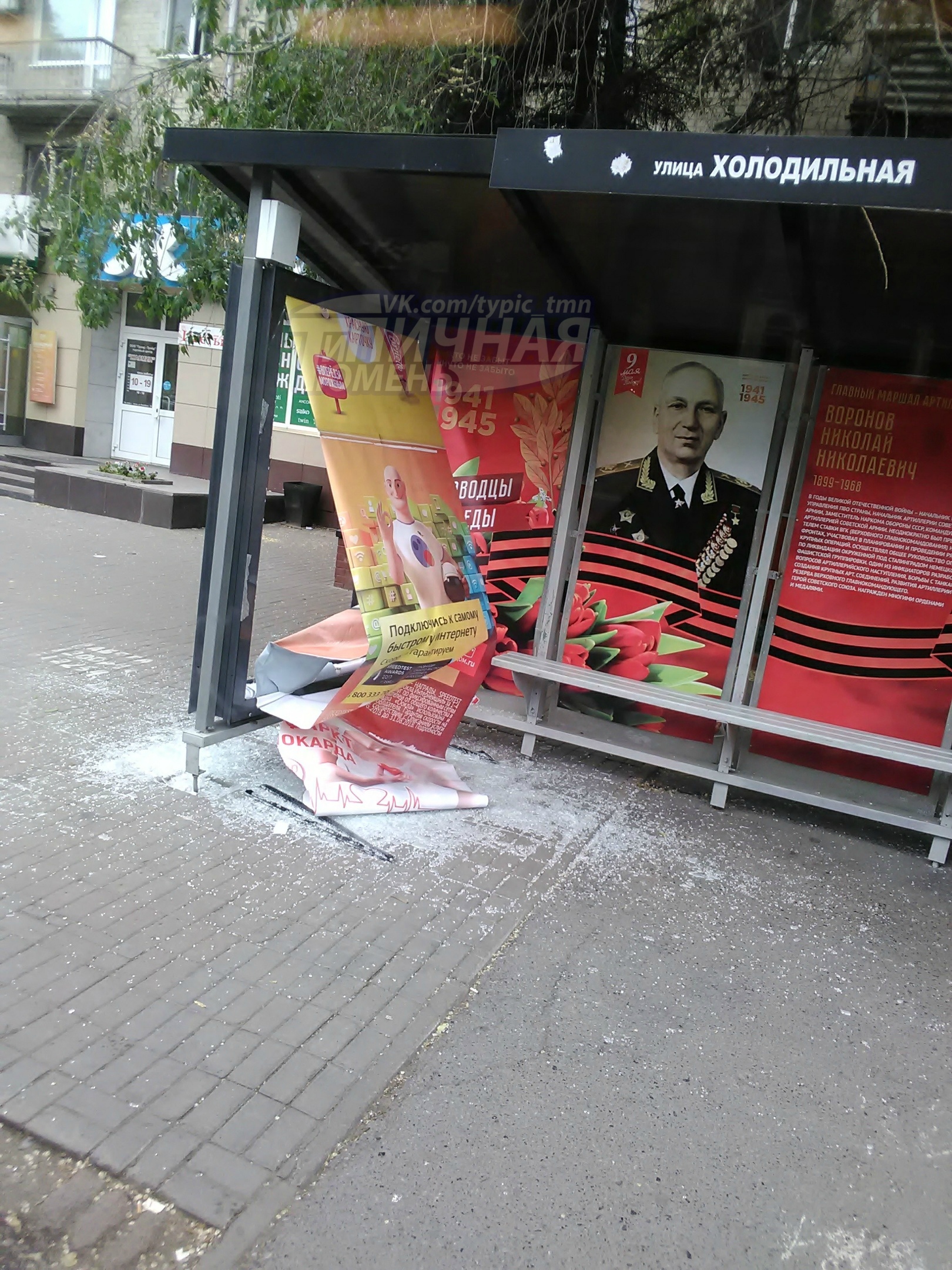 Тюменцы опубликовали в соцсетях фото поврежденного павильона. На снимках видно, что неизвестные разбили одно из стекол. На уцелевшей части остановки изображено фото главного маршала артиллерии в годы Великой Отечественной войны Николая Воронова. Тюменцы предположили, что остановку сломали или выпускники, или футбольные фанаты.