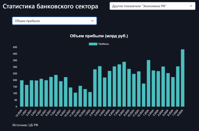 По итогам 8 месяцев 2024 года кредитные организации получили чистую прибыль в размере 2,4 трлн. руб. Если российский рубль и далее будет валиться, то к концу года прибыль банков может составить 3,6 трлн рублей, в то время как в 2023 г. годовая прибыль была равна 3,04 трлн.