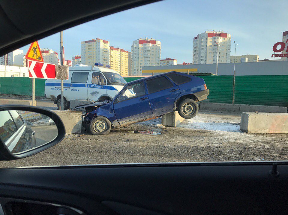 Как рассказали в дорожной полиции, авария произошла около четырех часов утра в районе ТРЦ «Остров». ВАЗ-2109 въехала зацепил Hyundai, после чего «Ладу» отбросило на бетонный блок, ограждающий место проведения ремонтных работ. Блок, в свою очередь, ударил полицейскую машину. В ГИБДД отметили, что 21-летний водитель «Лады» был пьян.