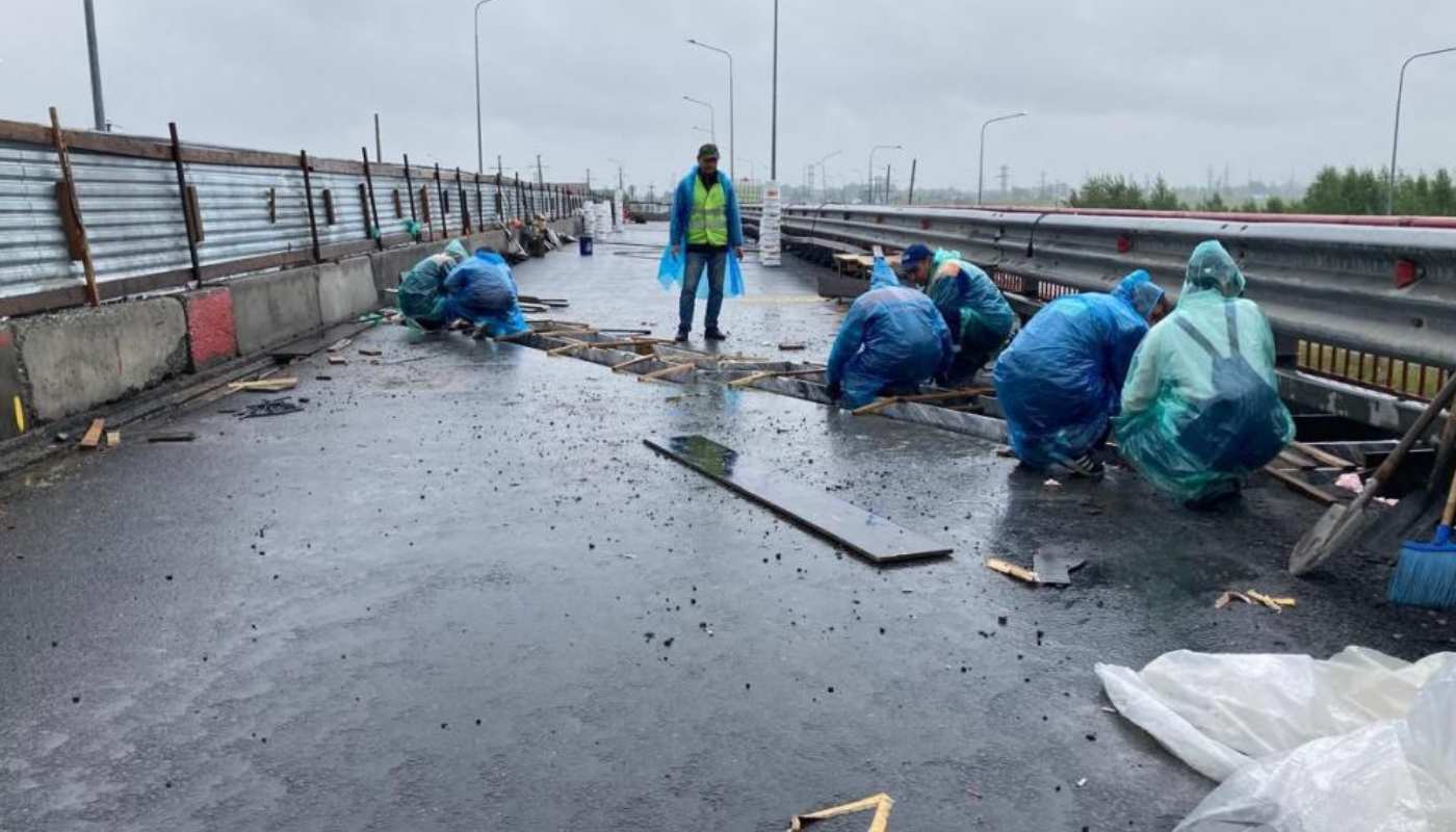 Между тем, на мосту уже восстановлены основание дороги, гидроизоляция и уложены слои асфальта.