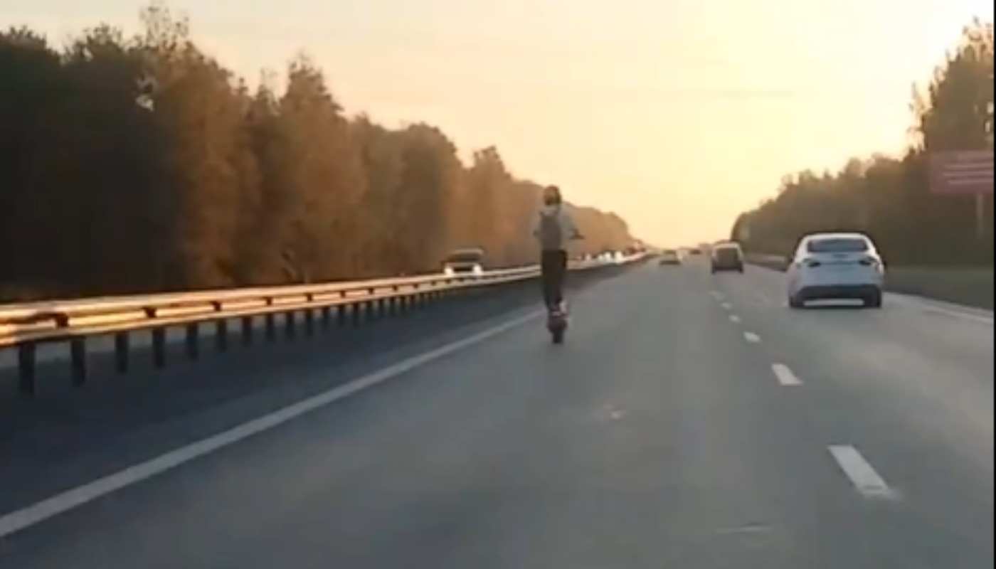На днях очевидцы, ехавшие по трассе Тюмень — Екатеринбург под Тюменью, наблюдали необычную картину. Неизвестный мужчина ехал на электросамокате в крайнем левом ряду. Видео экстремальной поездки выложили в соцсетях.