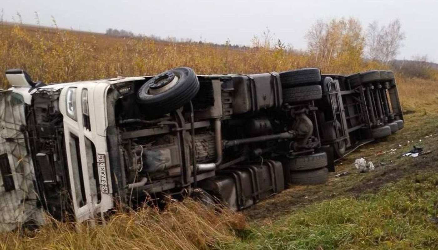 Сегодня утром в Тюменской области на трассе в Бердюжском районе грузовик MAN съехал в кювет и опрокинулся.