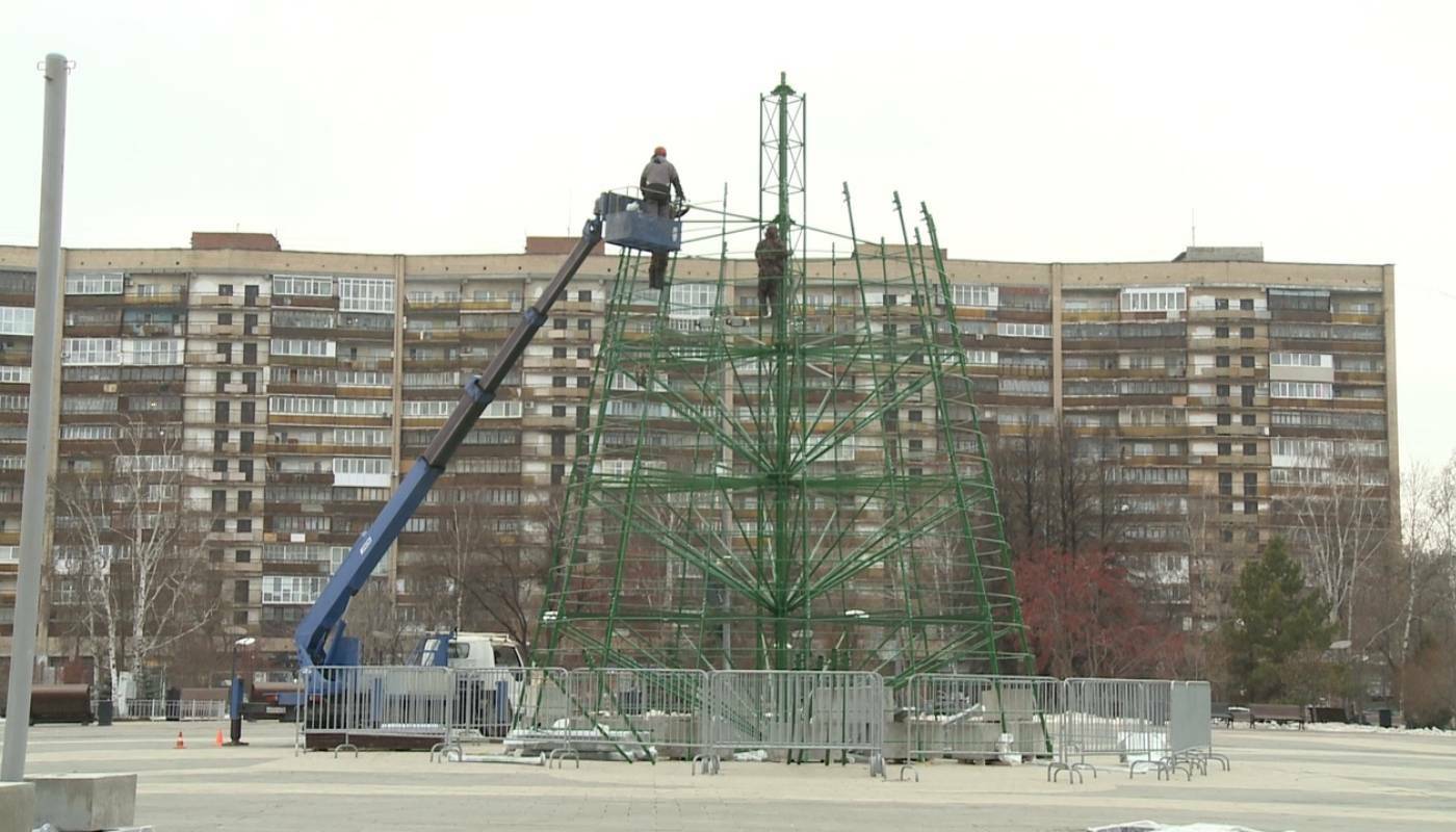 В Тюмени начался монтаж главной новогодней елки. Ее начали устанавливать на площади 400-летия города.