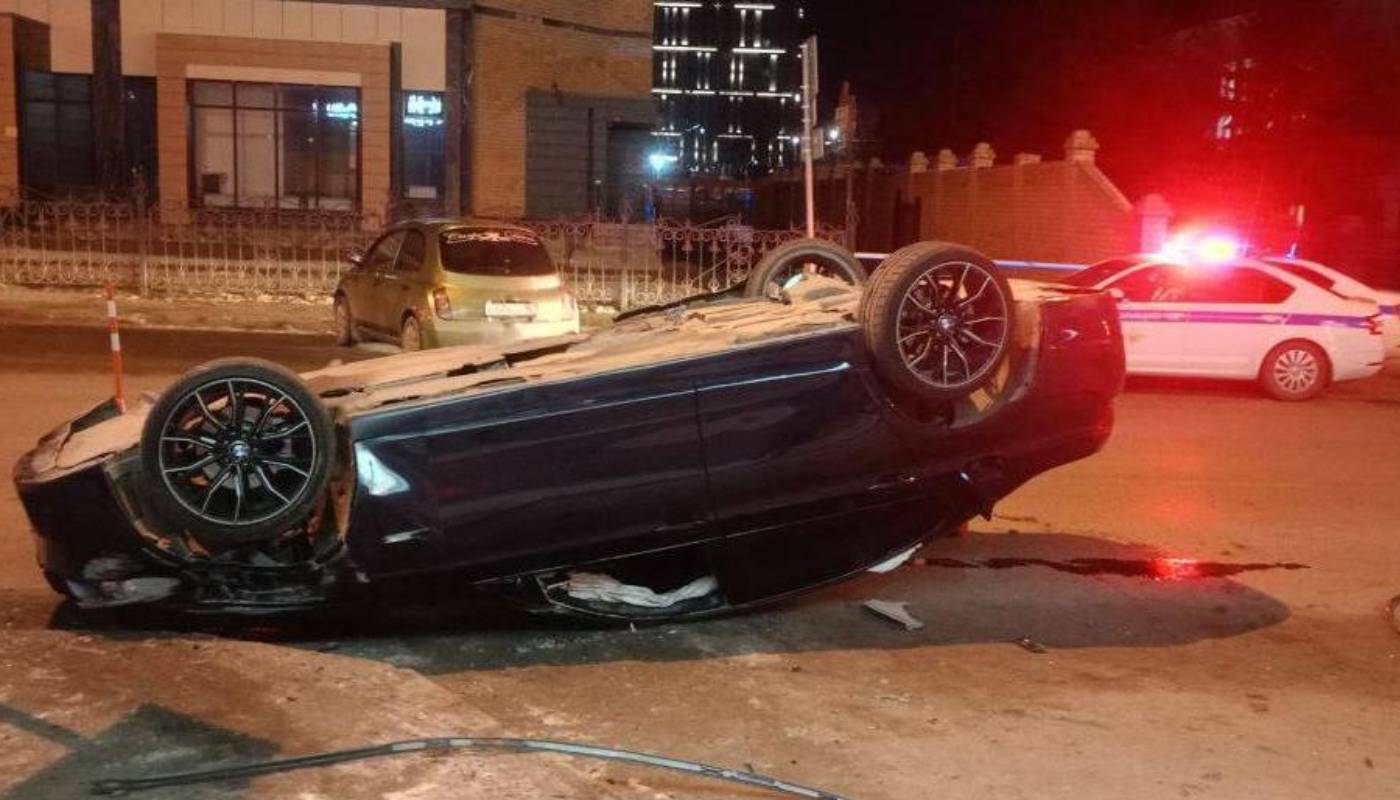 Жесткое ДТП сучилось в Тюмени минувшей ночью. На ул. Горького столкнулись автомобили BMW и Hyundai. От удара машины отбросило в дом. Одна из машин перевернулась на крышу.