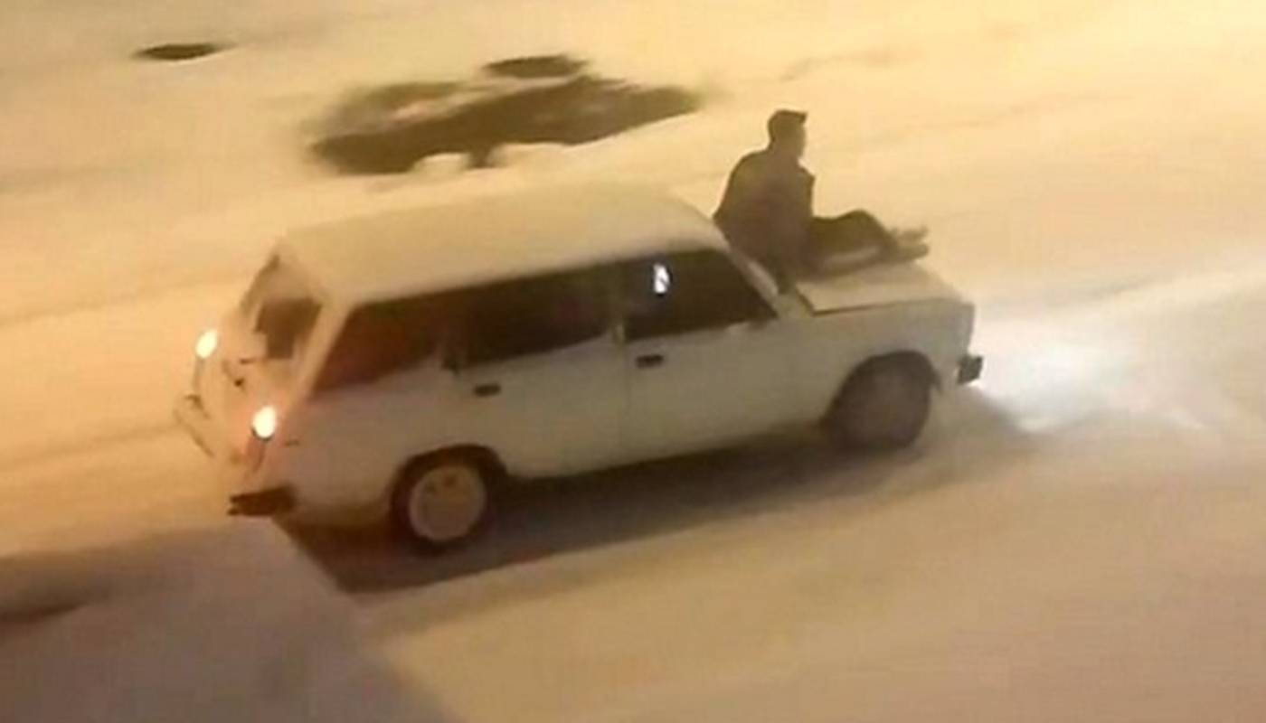 В соцсетях Тобольска появилось видео, где на капоте автомобиля катается человек.
