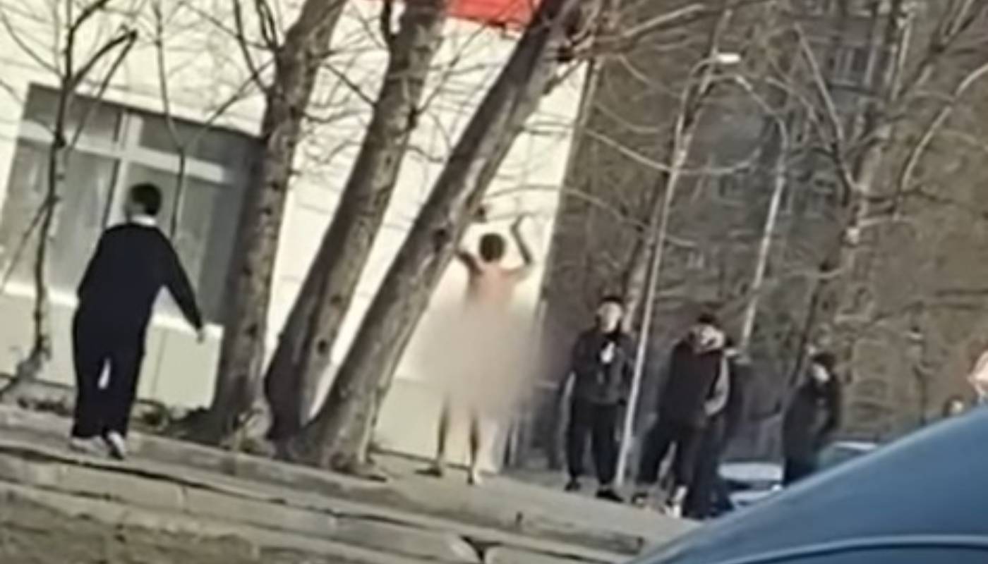 Очевидцы сообщили в соцсетях, что неизвестный гражданин ходил перед подростками с поднятыми руками, демонстрируя свои гениталии, а затем улегся на землю.