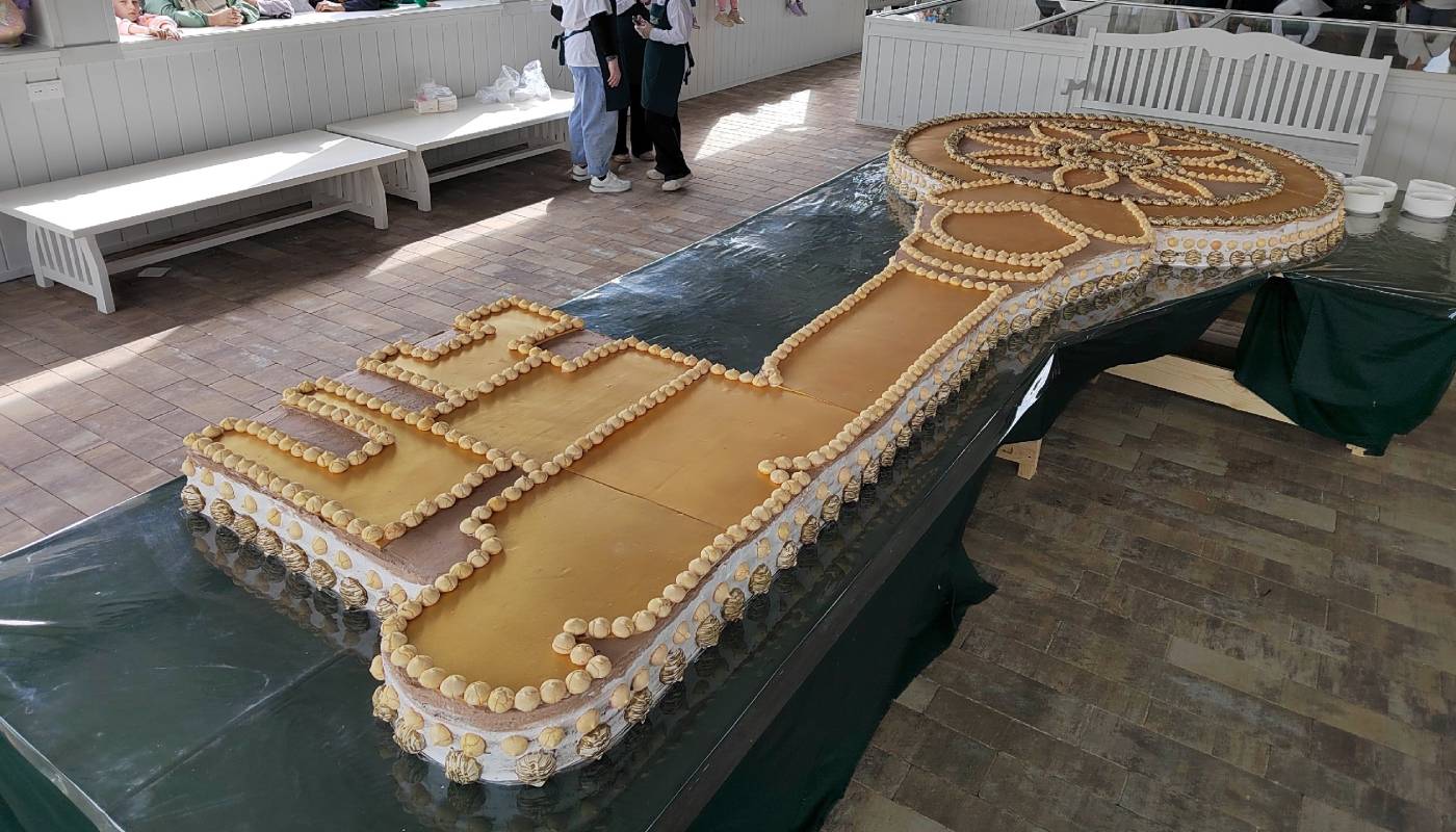 4,5-метровый торт весом более 600 кг. выполнен в виде ключа как символ ключа к счастью, здоровью и благополучию.