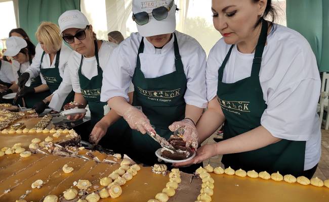 Тобольск идет на рекорд. Накануне в культурной столице Западной Сибири на фестивале «Кофе, Искусство и Шоколад» местные кондитеры презентовали гигантский торт «Ключ к Сибири».