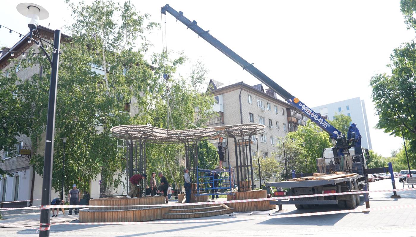 В Тюмени демонтируют сцену на пешеходной улице Дзержинского. Она будет перенесена на площадку рядом с фиджитал-центром на улицу Береговую.