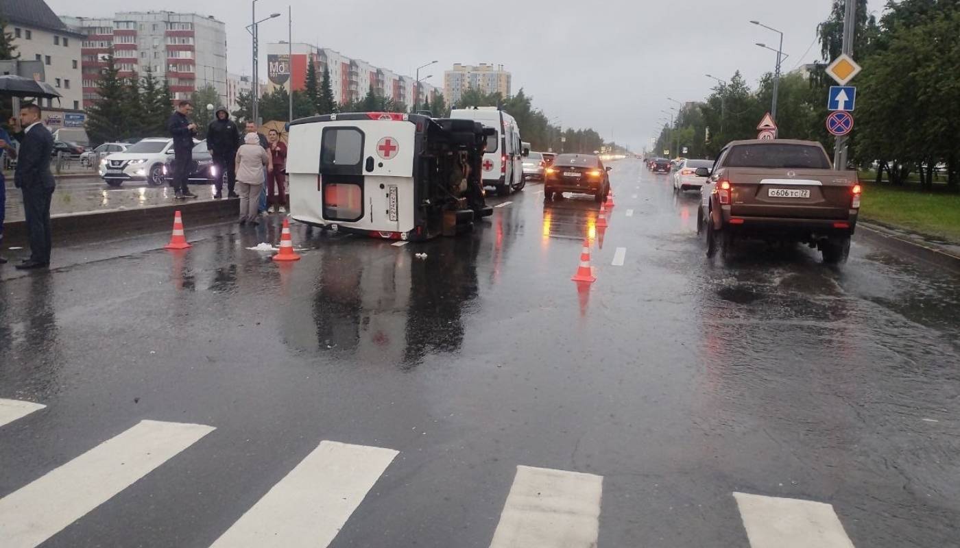 Жесткое ДТП произошло накануне в Тобольске. На пересечении Комсомольского проспекта и проспекта Менделеева столкнулись автомобиль «скорой помощи» «Луидор» и «Лада Гранта». От удара «Луидор» опрокинулся на бок.