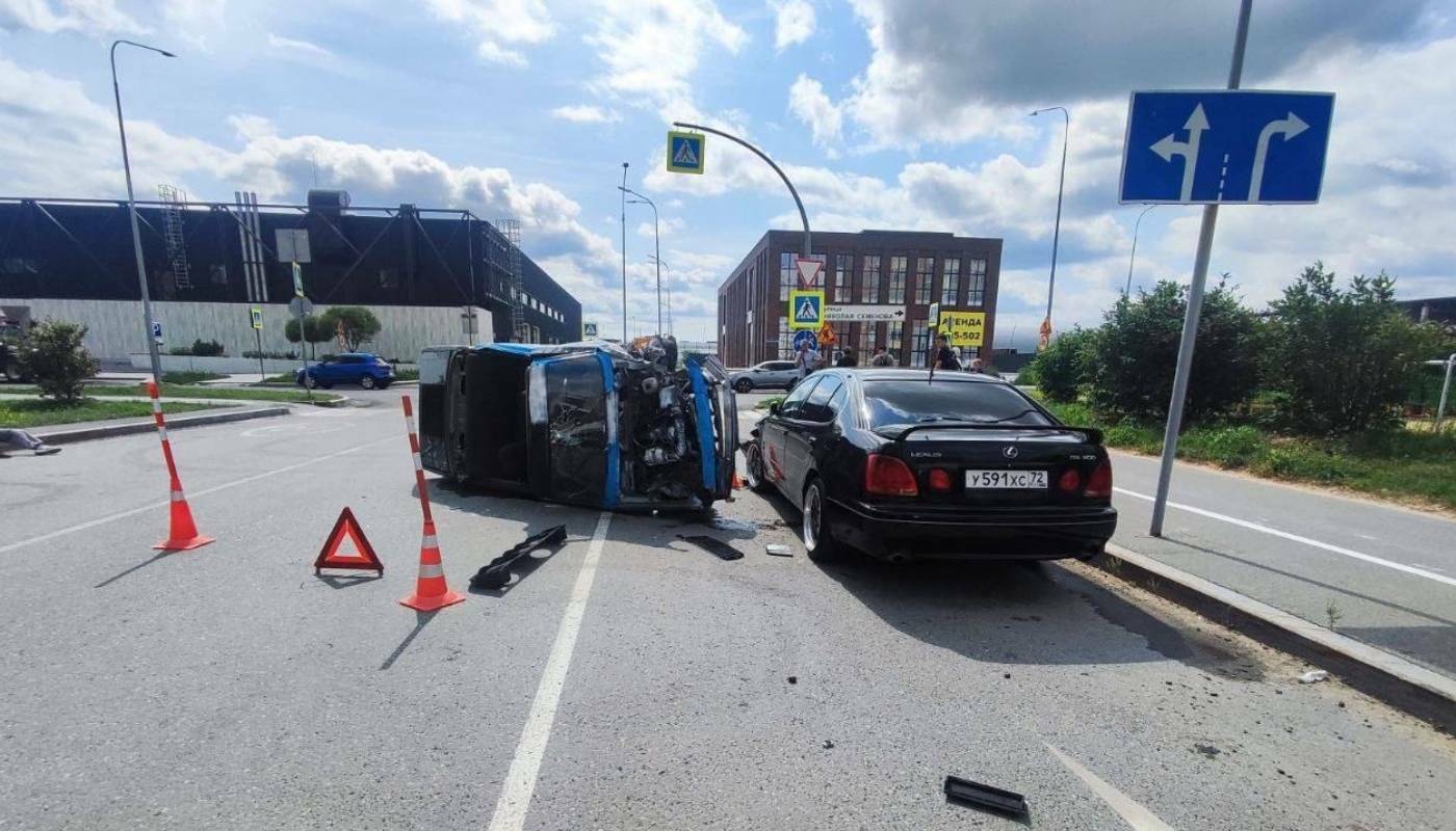 Как сообщили в областном УГИБДД, на ул. Николая Семенова автомобиль ВАЗ2107 с обрезанной крышей въехал в стоящий на парковке «Лексус», от удара отечественная легковушка опрокинулась.