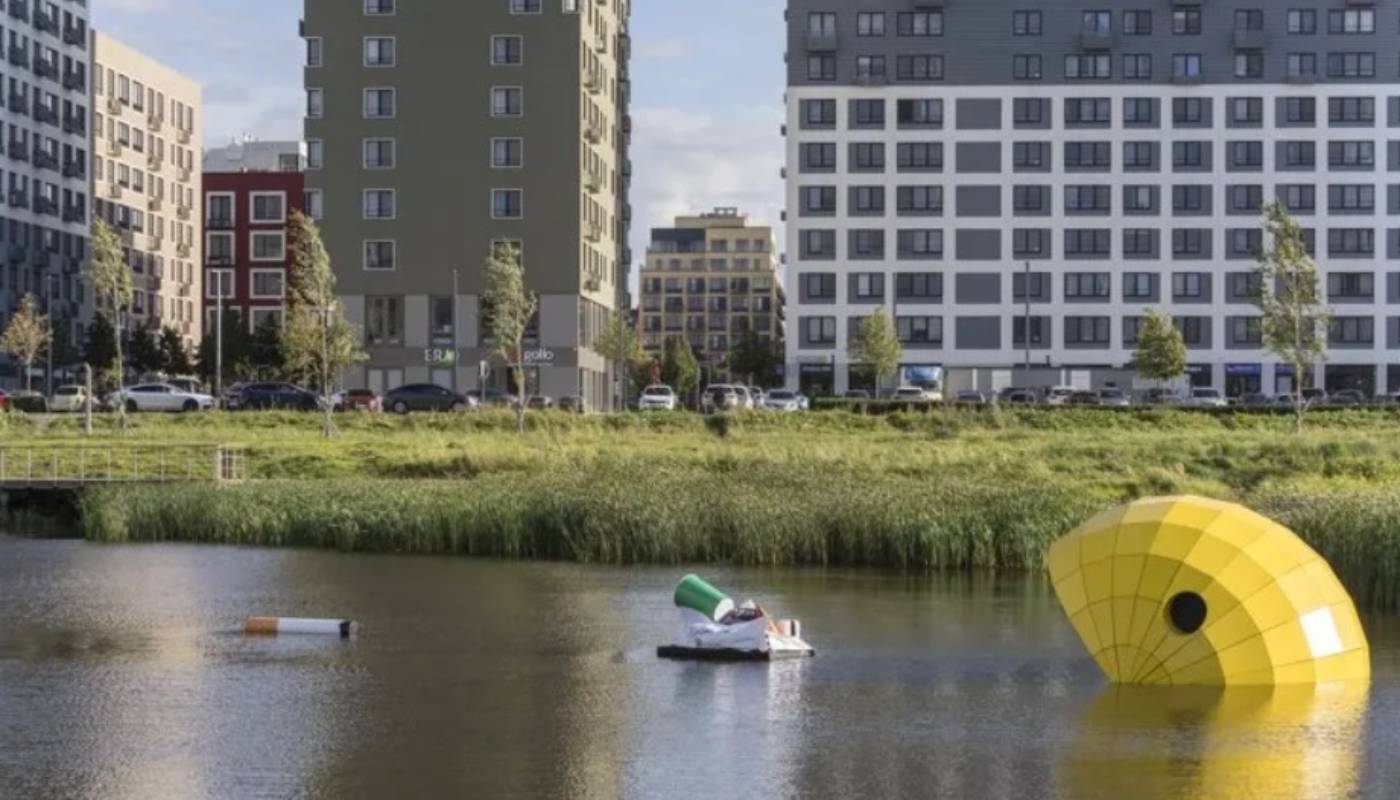 В Тюмени на озере Тихом появился необычный арт-объект - гигантский герой популярной компьютерной игры Пакман, который «съедает» мусор из водоема. Его установили по инициативе компании-застройщика «Брусника».