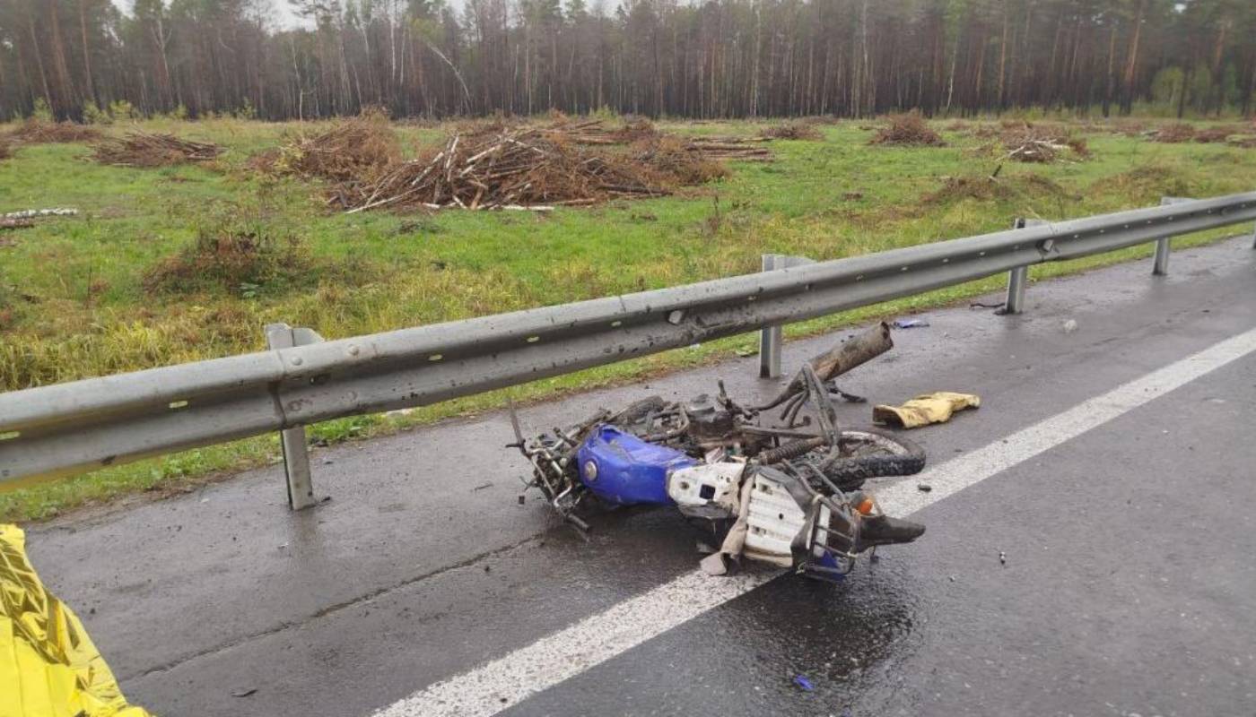 Как сообщили в областном УГИБДД, мотоциклист столкнулся с большегрузом «Урал». От удара грузовик въехал полуприцепом в ограждение.