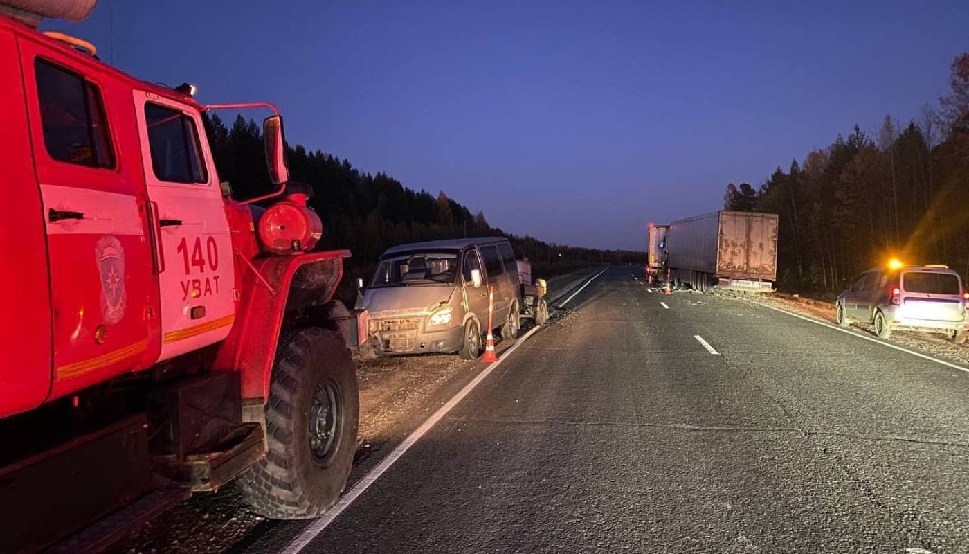 Накануне на трассе Тюмень - Ханты-Мансийск в Уватском районе произошло массовое ДТП. Здесь столкнулись два большегруза и три легковых автомобиля.