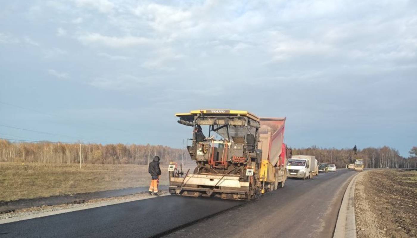 Все работы идут по графику. Обустроено земляное полотно, щебеночные и асфальтобетонный слои. Сейчас рабочие обустраивают водоотводные лотки, укладывают тротуары, монтируют освещение.