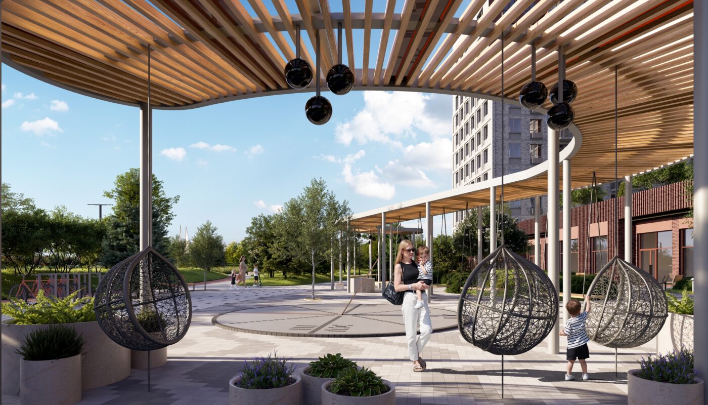 На набережную будет выходить бульвар Артура Ольховского, который компании также благоустроят совместными усилиями, каждая свой участок. Здесь появятся детская площадка, спортивная инфраструктура, зоны отдыха, сад трав и небольшой пруд.