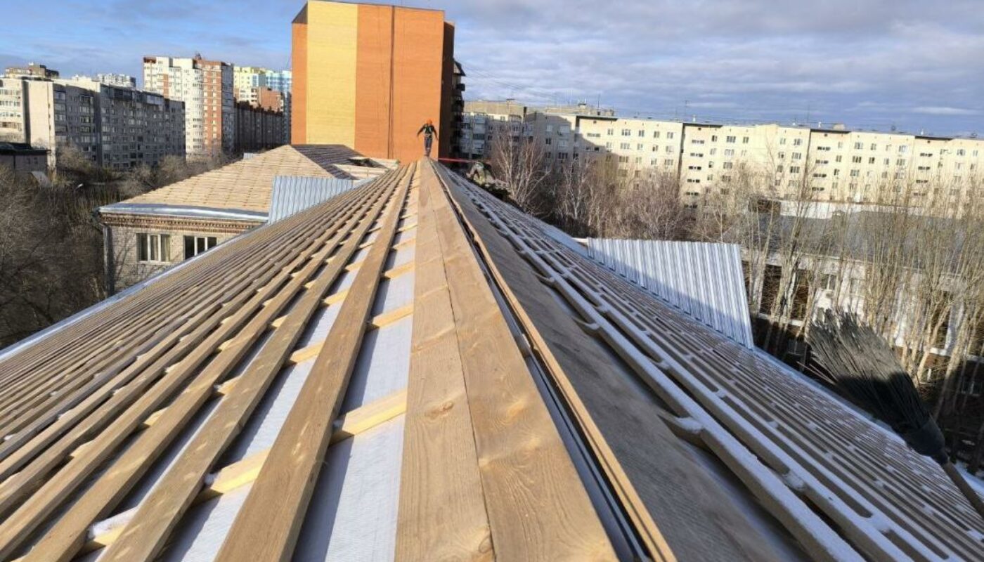 Например, на крыше дома в Тюмени по ул. 50 лет Октября, 33, подрядчик приступил к монтажу профлиста. Стропильная система и обрешётка уже готовы. Заканчивается кладка противопожарных перегородок. Впереди монтаж вентиляционных шахт.