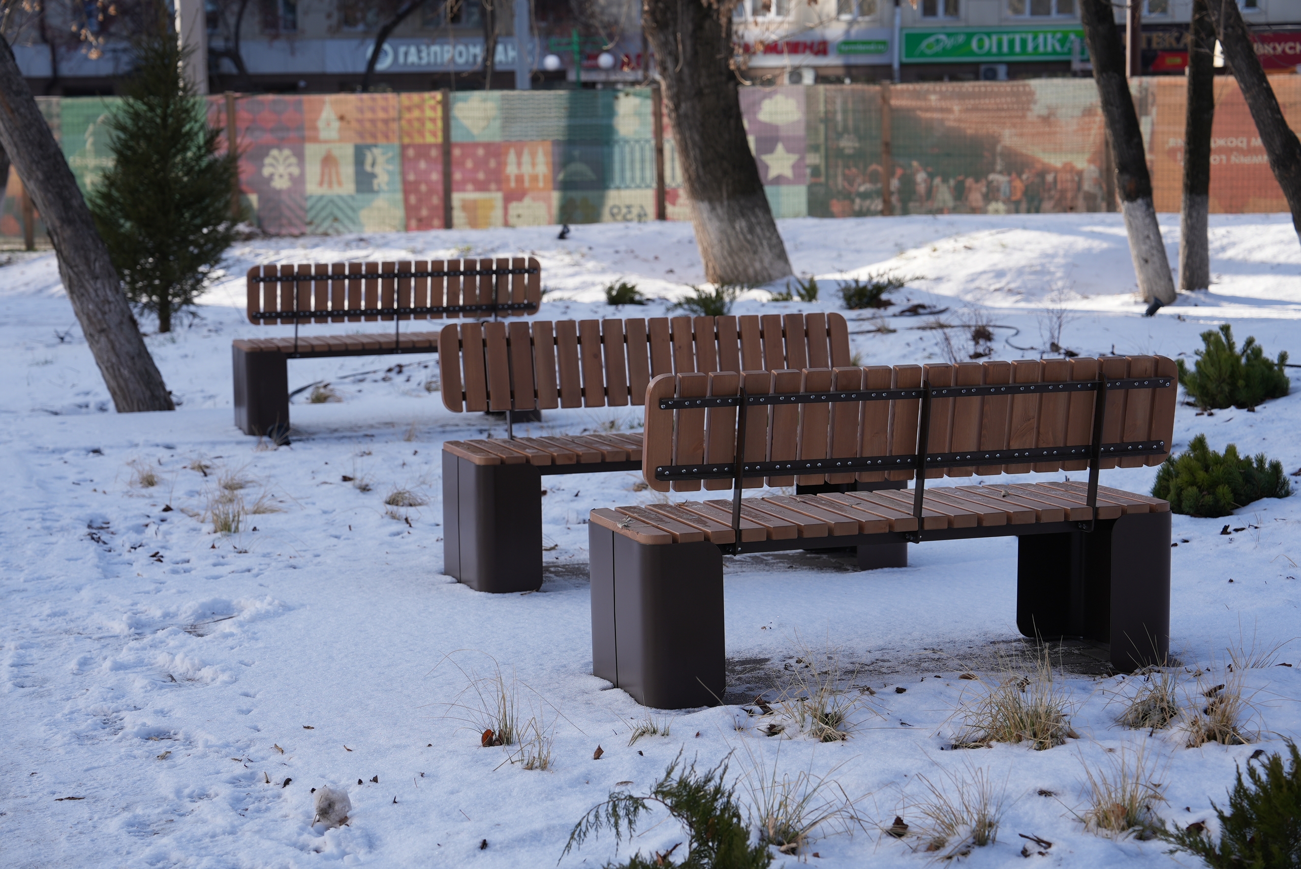 Преображается и сквер Машарова. Здесь уже установлены новые скамейки и необычные декоративные элементы, выполненные в стиле продукции, выпускавшейся на бывшем чугунолитейном заводе.