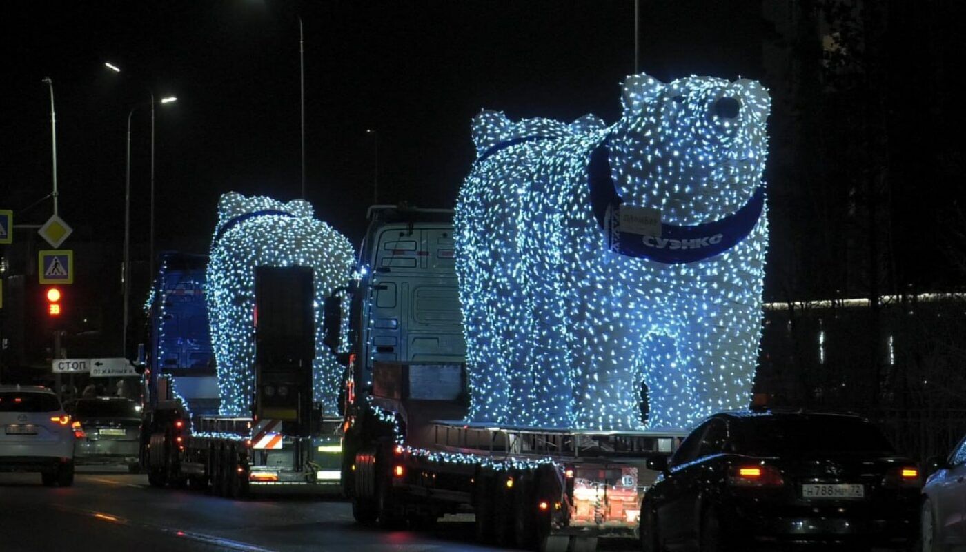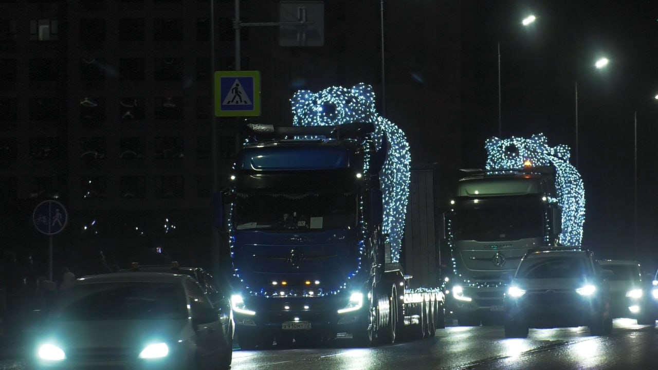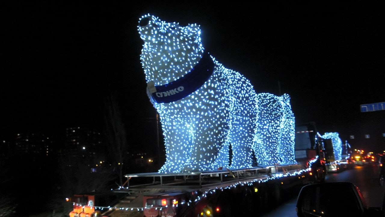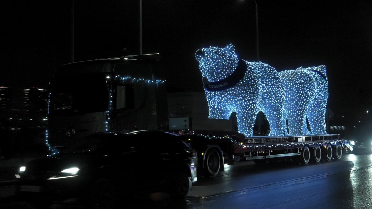 Сегодня, 25 ноября, в по улицам Тюмени проехал новогодний кортеж светящихся медведей компании СУЭНКО.