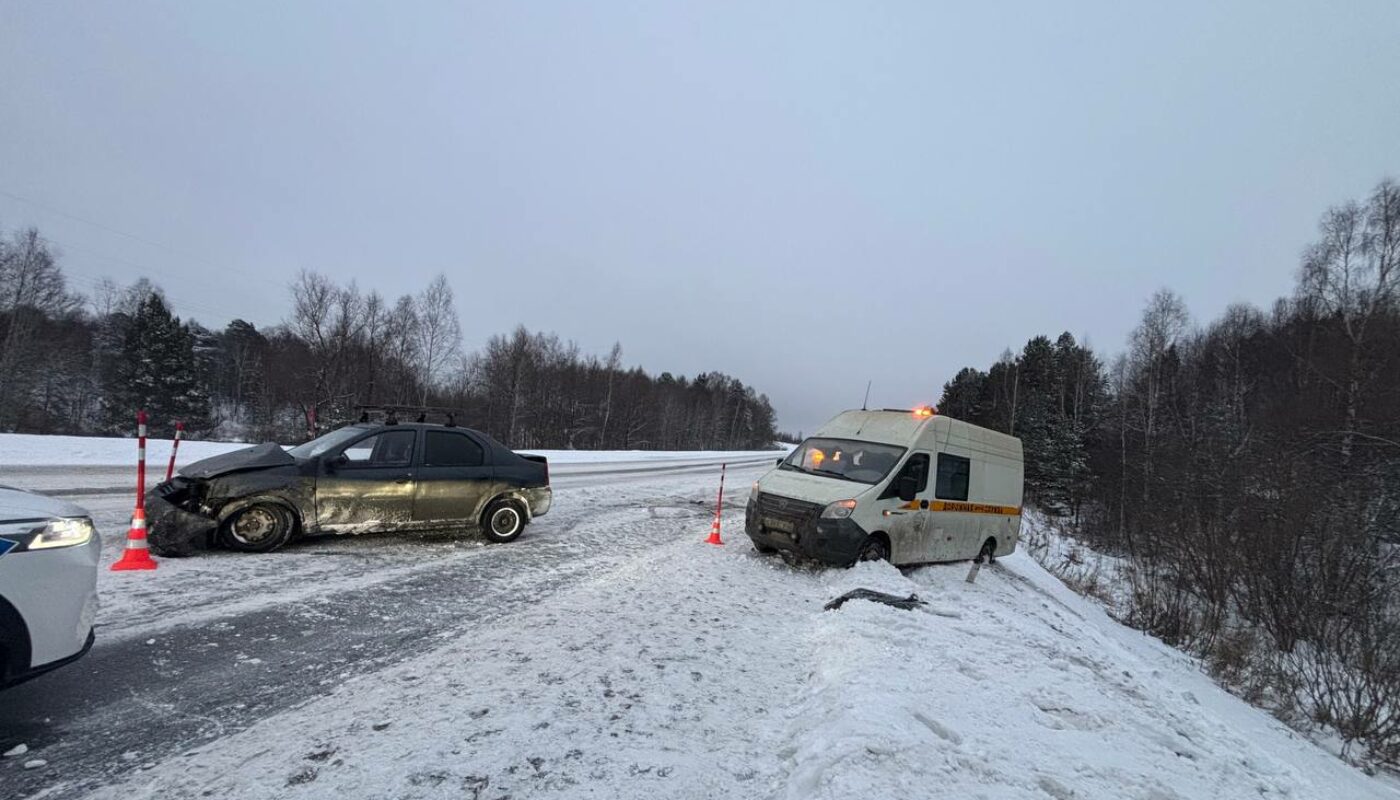 Серьезное ДТП произошло сегодня на трассе Тюмень - Ханты-Мансийск. На 247-ом километре автомобиль «Рено Логан» въехал в стоящий автофургон «Газель» дорожной службы.