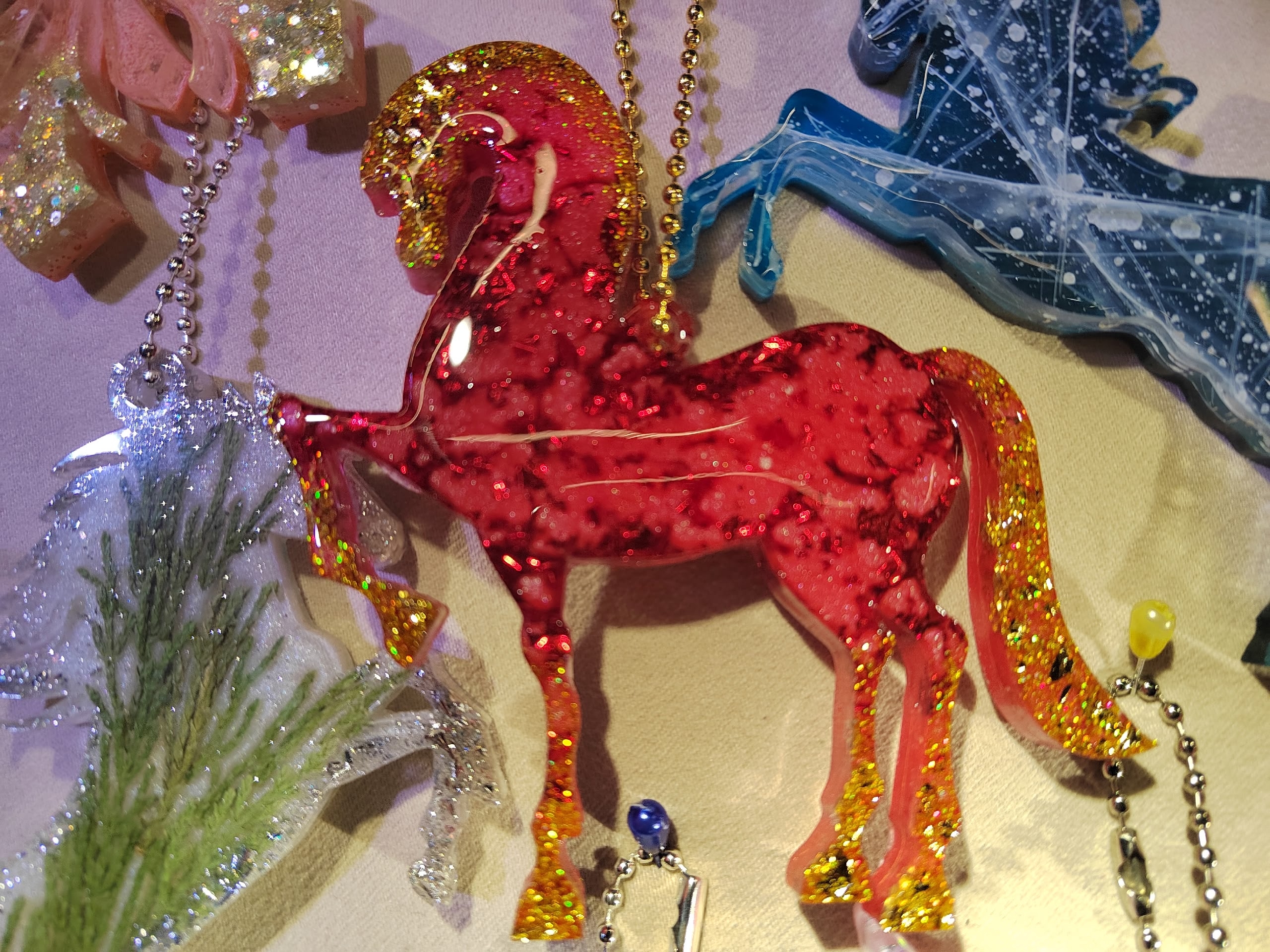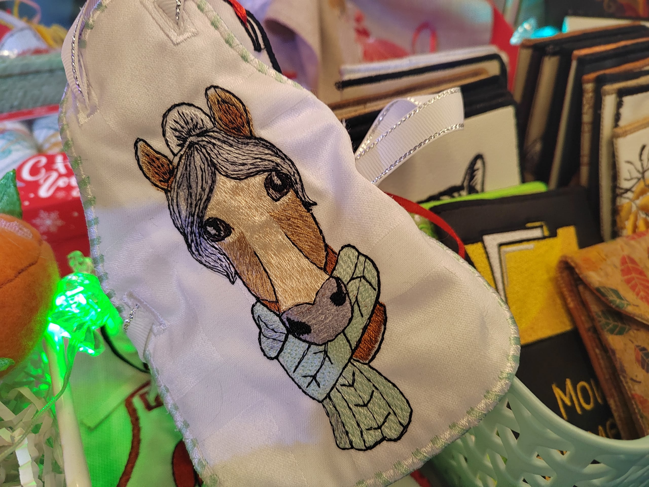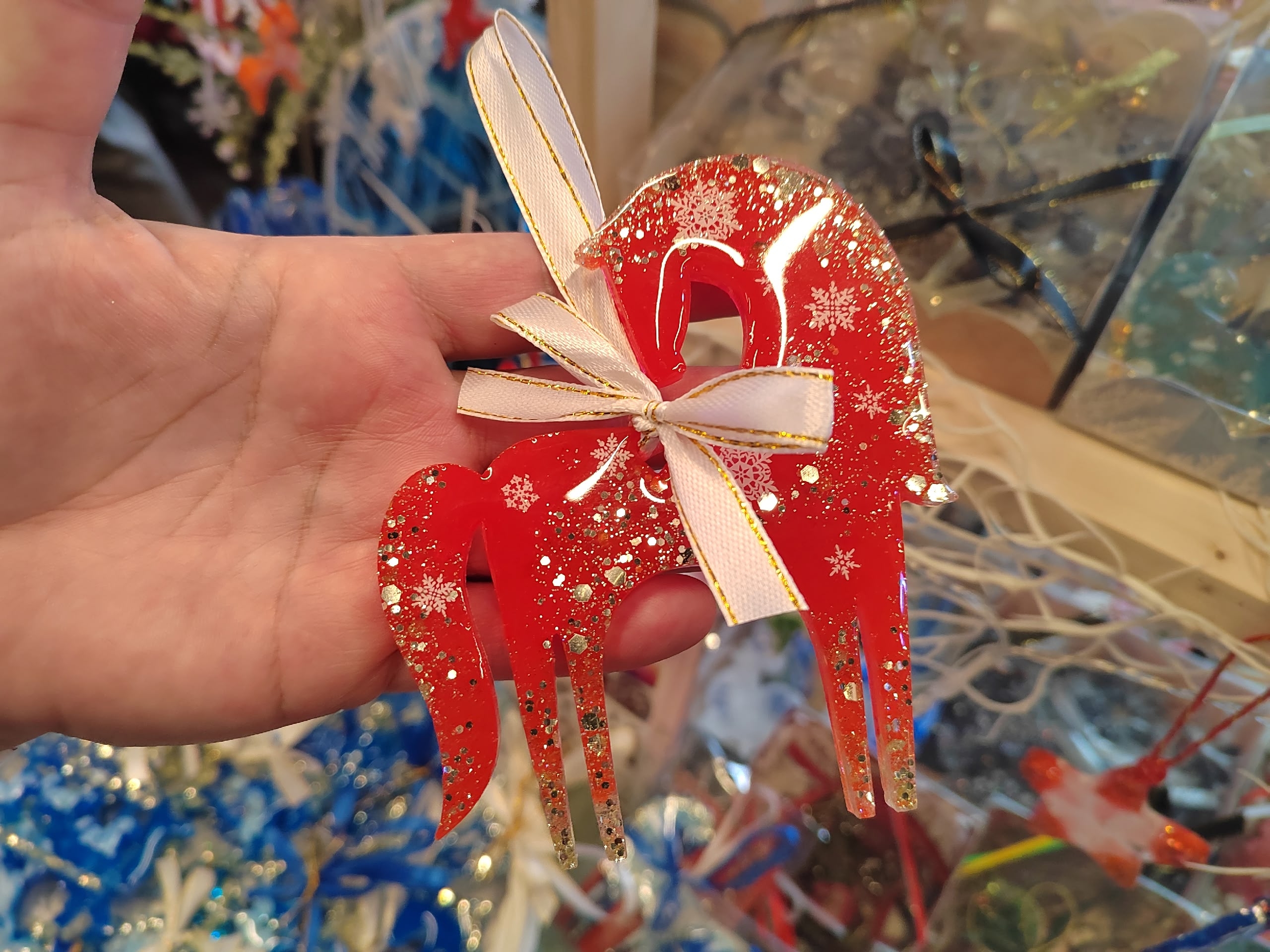 В кануне Нового года всегда тюменцы с удовольствием приобретают новогодние игрушки. Здесь их на любой вкус. В этом году много игрушек, сделанных в виде символа наступающего года – лошади. Материал в их изготовлении используют разный – керамика, бисер, ткань.