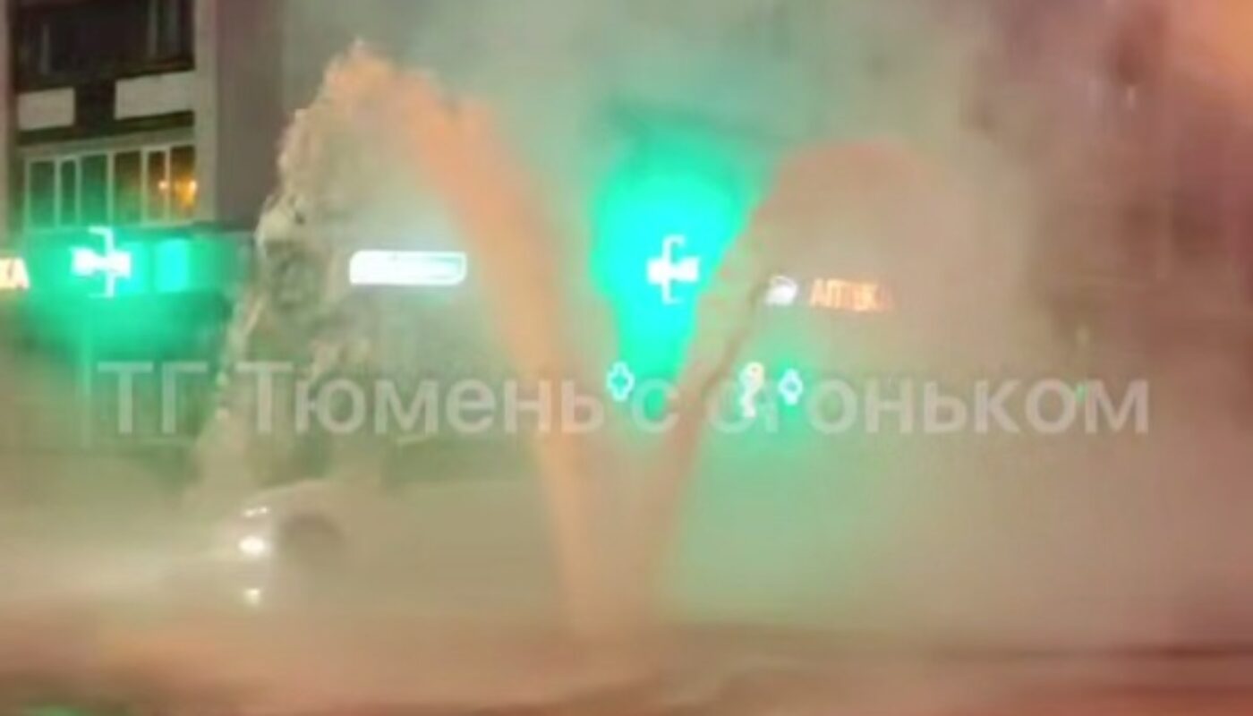 Сегодня утром в центре Тюмени произошло коммунальное ЧП. На перекрестке улиц Мельничной и Фабричной прямо на дороге из-под земли забил мощный фонтан воды высотой до 2 метров.