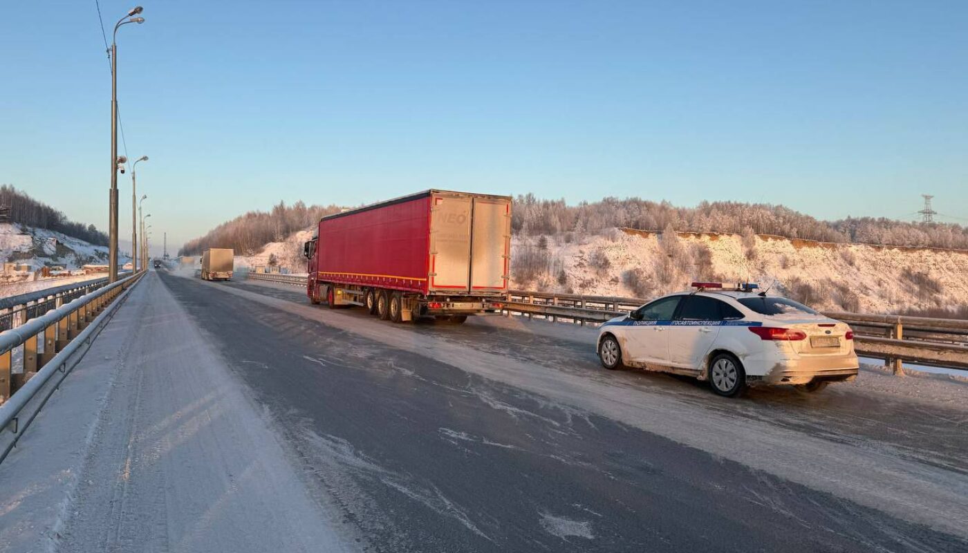 Проезжающие мимо автомобилисты проинформировали автопатруль ДПС, находящийся неподалёку. Инспекторы незамедлительно прибыли на место нахождения большегруза, перекрывшего одну полосу движения.