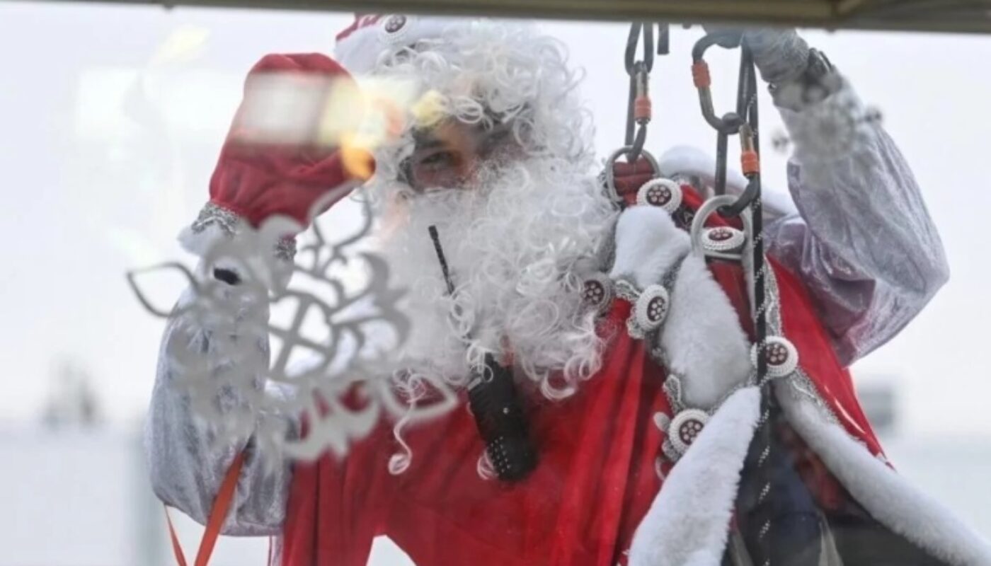 Спасатели волонтеры в костюмах Дедов Морозов при помощи альпинистского снаряжения спустятся с крыши и заглянут в окна больницы, чтобы поздравить детей с наступающим Новым годом и вручить подарки.