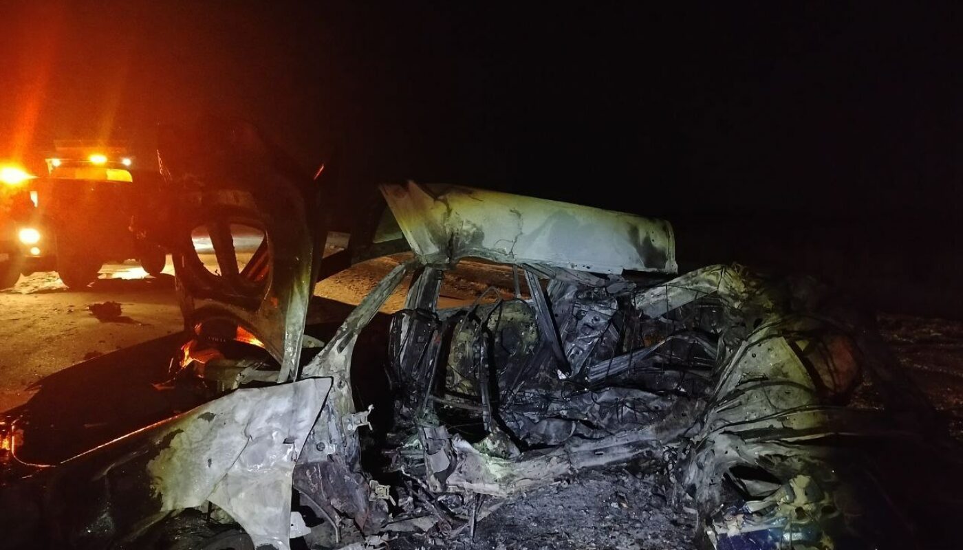 По предварительным данным, водитель «Рено» выехал на встречную полосу движения, что привело к лобовому столкновению с минивэном. Удар был настолько сильным, что «Рено» вспыхнул и полностью сгорел. К сожалению, в результате аварии погибли три человека: водитель и два пассажира, предполагаемые члены одной семьи из Челябинской области — мать, отец и их ребенок. Автомобиль двигался в сторону Новосибирска.