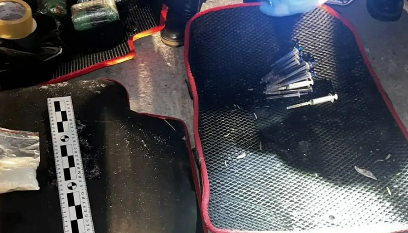 В присутствии понятых автоинспекторы обнаружили под передним пассажирским сиденьем, на котором сидел мужчина, прозрачный пакет с веществом белого цвета, а также 13 шприцев. Кроме того, в спортивной нагрудной сумке, принадлежащей пассажиру, полицейские нашли ещё 4 свёртка, перемотанных скотчем.