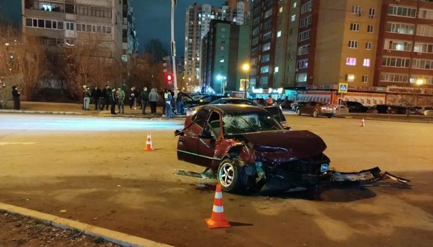 От удара автомобиль «Мерседес» отбросило на опору светофора.