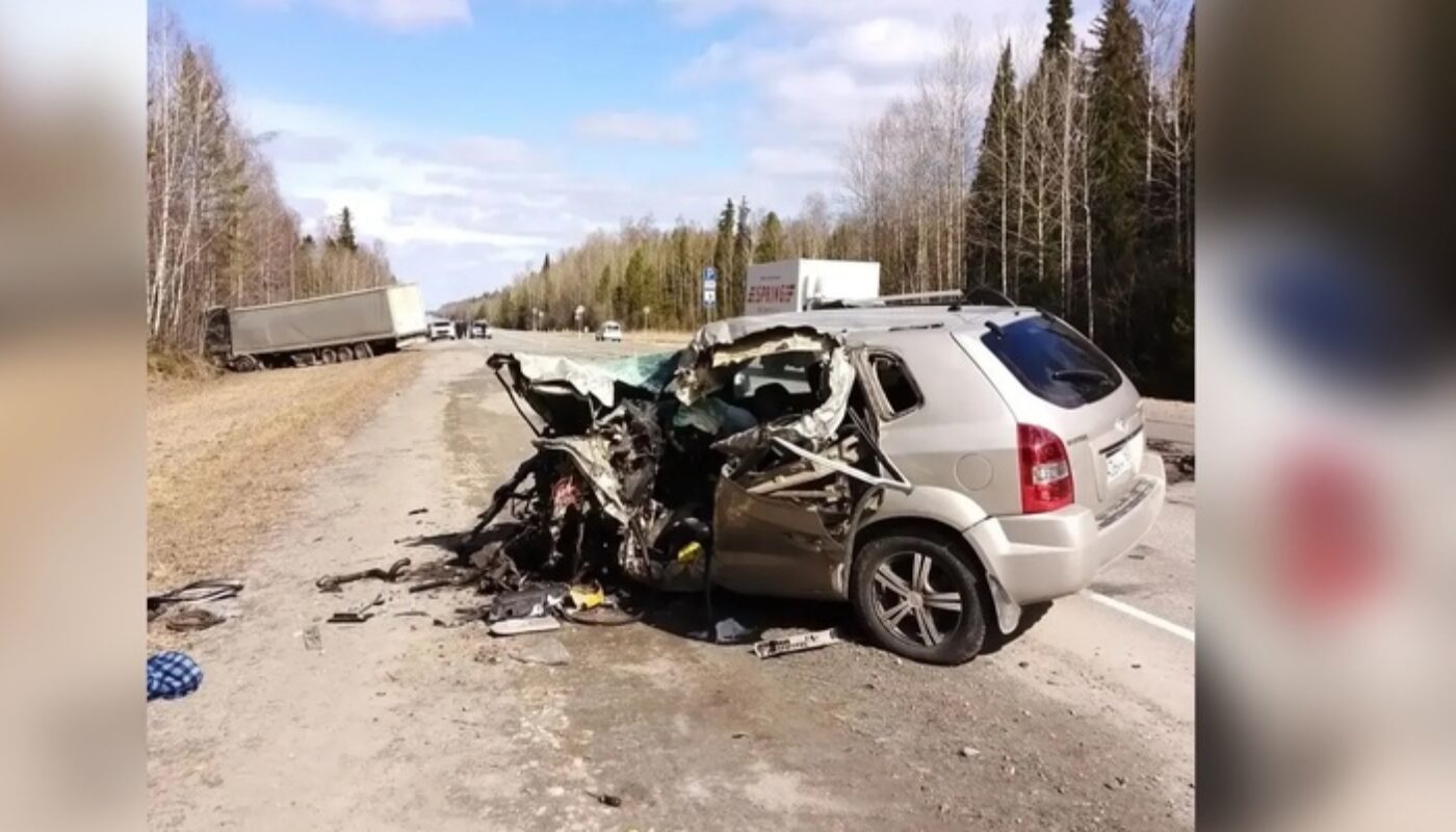 Накануне, 15 апреля, на 333-ом км автодороги Тюмень - Ханты-Мансийск произошло смертельное ДТП. Автомобиль ХЕНДАЙ ТУССОН выехал на полосу встречного движения и допустил лобовое столкновение с грузовым автомобилем ИВЕКО.