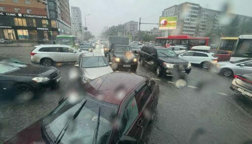 Горожане уже делятся фотографами и видеороликами, снятыми на улицах столицы. В ряде районов города они из-за дождя превратились в реки и огромные лужи-озера, а на дорогах автомобилисты вмиг встали в огромные пробки.